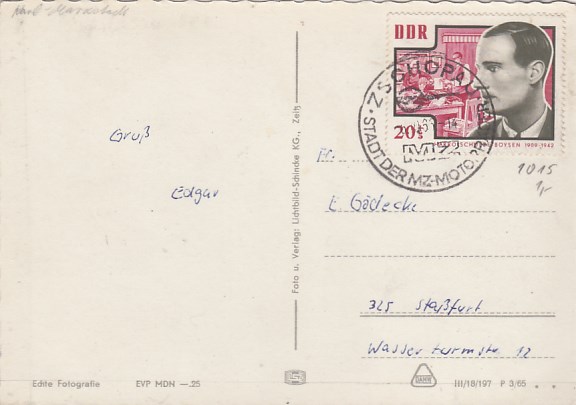 Bad Langensalza 1965 Anlaß Stempel MZ Motorradwerke Zschopau
