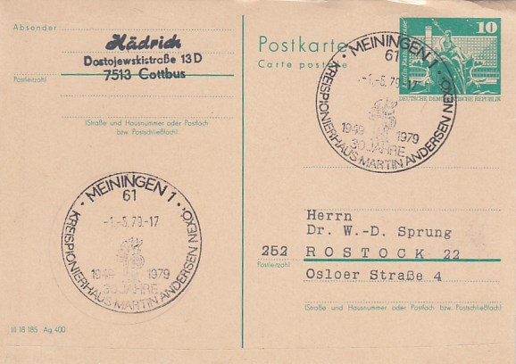 Meiningen in Thüringen anlaß Stempel Pionierhaus