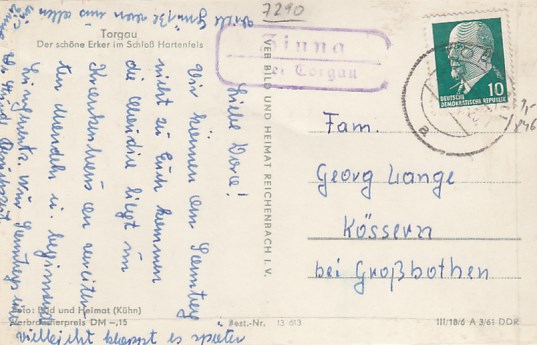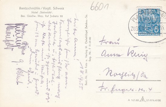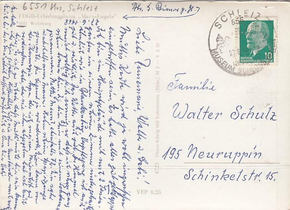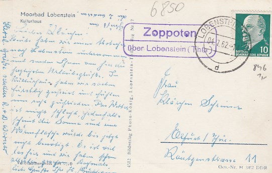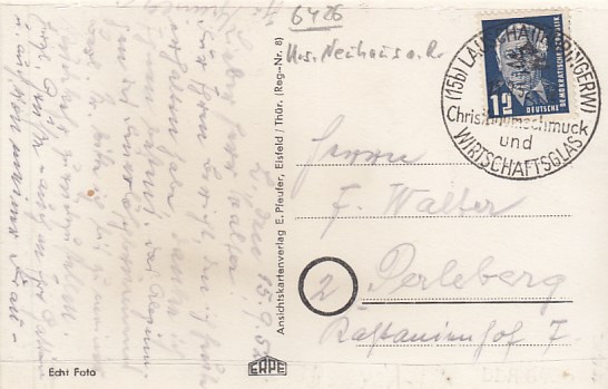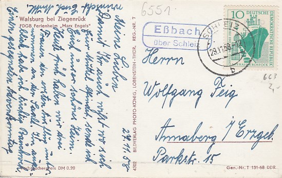 Walsburg bei Ziegenrück Thüringen Landpoststempel Eßbach 1958