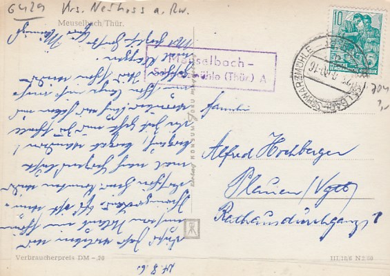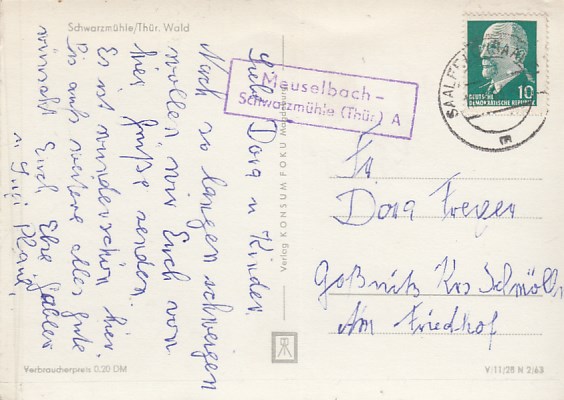 Meuselbach-Schwarzmühle Thüringen Landpoststempel 1961