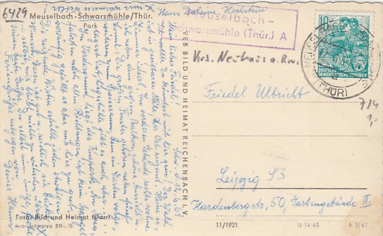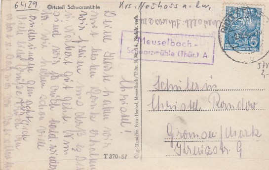 Schwarzmühle Thüringen Landpoststempel Meuselbach