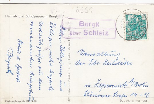 Schloss Burgk Landesverein Gera Reuss Stempel Leutenberg bei Ziegenrück Thüringen
