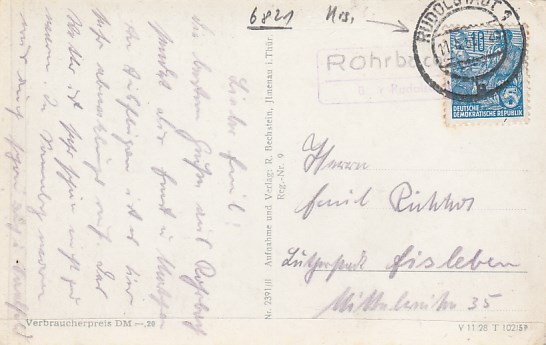 Friedrichshöhe Rennsteig Landpoststempel Eisfeld 1960