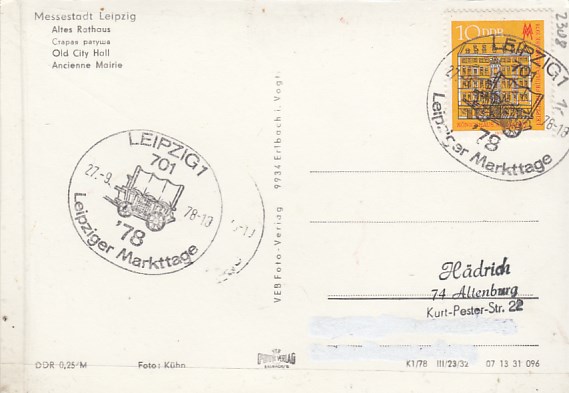 Leipzig Rathaus Anlaß Stempel Markttage 1978
