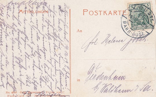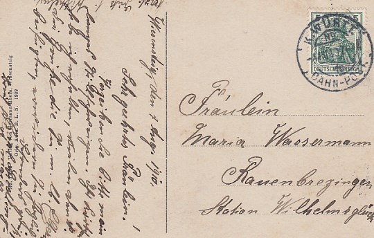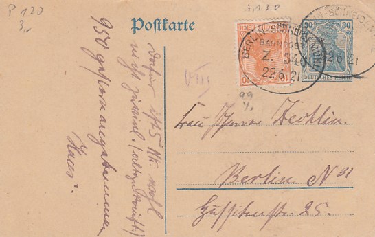 Bahnpoststempel Berlin Schneidemühl auf AK Charlottenburg