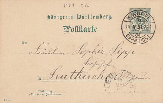 Briefe Belege Bahnpoststempel Weissensee Saal-Unstrutbahn 1886
