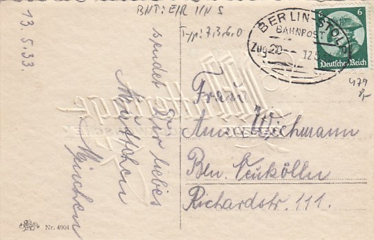 Bahnpoststempel Berlin Stolp Pommern 1933 AK zum Muttertag
