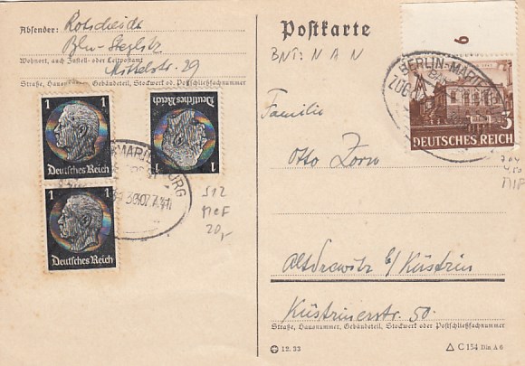 Bahnpoststempel Briefe Belege Berlin Schneidemühl 1936