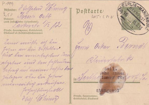 Bahnpoststempel Briefe Belege Berlin Marienburg 1931