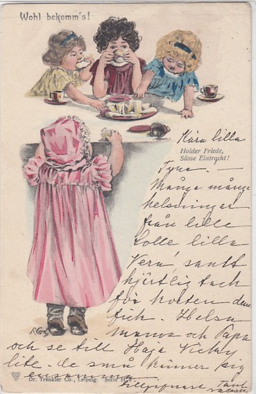 Kinder Kuchen AK Eingangsstempel Sassnitz-Trelleborg Schweden 1902