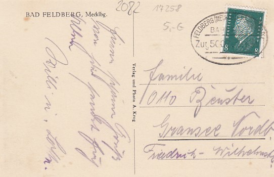 Feldberg in Mecklenburg Lucin Bahnpoststempel 1935
