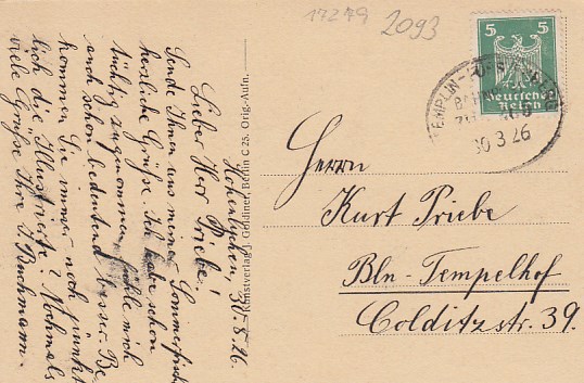 Lychen Uckermark Oberpfuhl Bahnhpoststempel 1926
