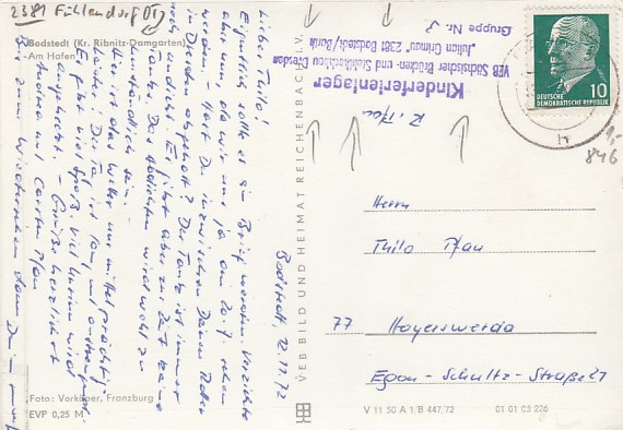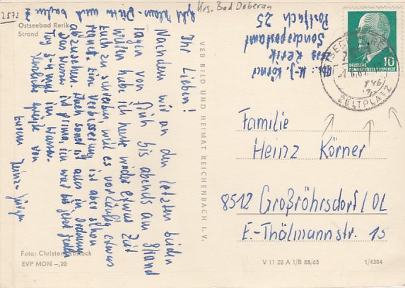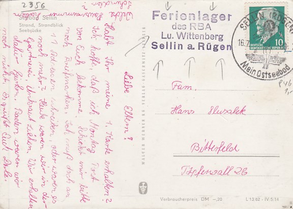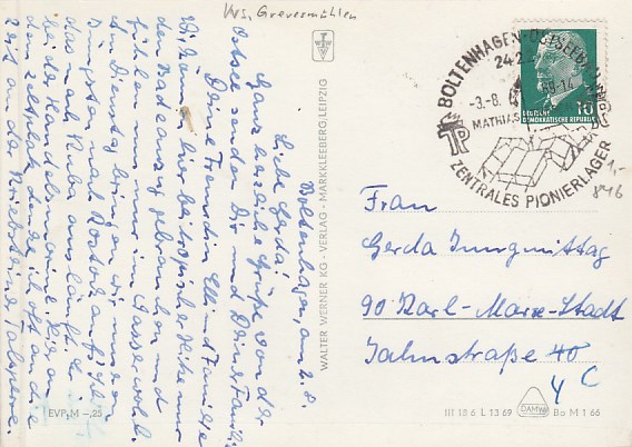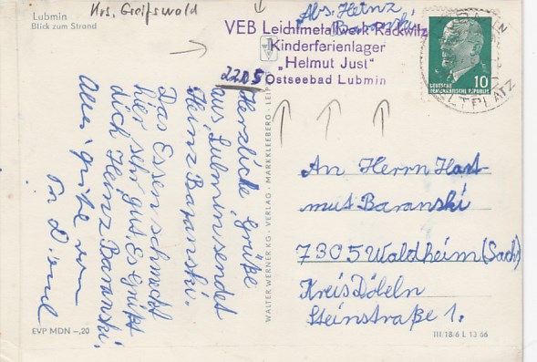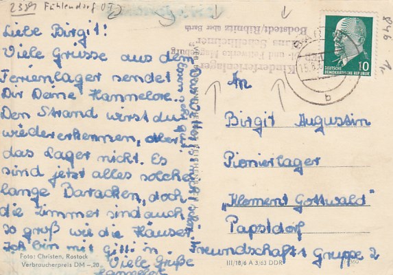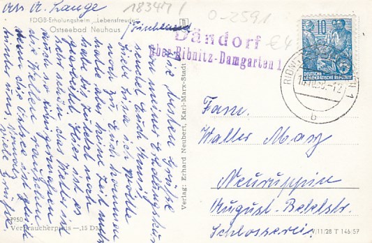 Ostseebad Neuhaus Landpoststempel Dändorf bei Ribnitz-Damgarten 1957 FDGB-Heim
