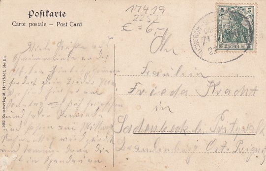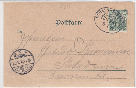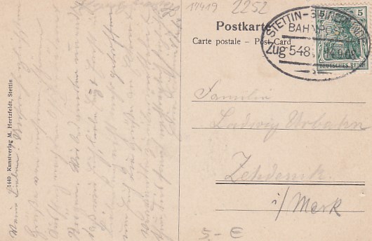 Ostseebad Ahlbeck 1908 Bahnpoststempel Stettin-Swinemünde