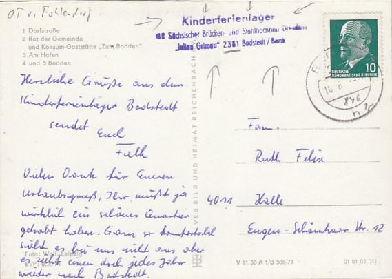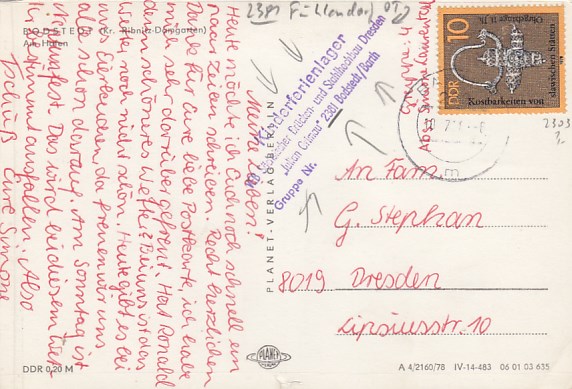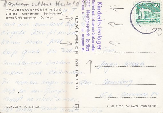 Magdeburgerforth 1982 Sonderstempel Kinderferienlager Salzwedel