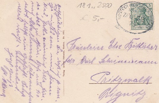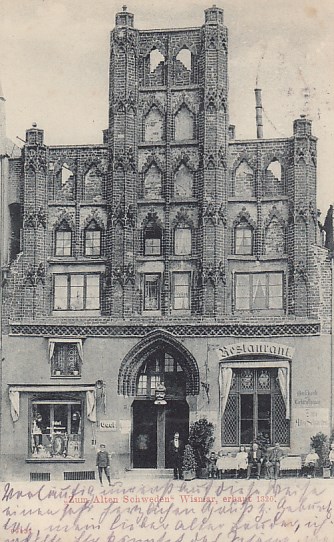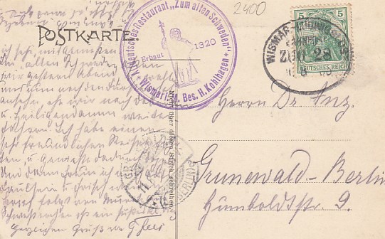 Wismar Restaurant zum alten Schweden Bahnpoststempel Ludwigslust 1908