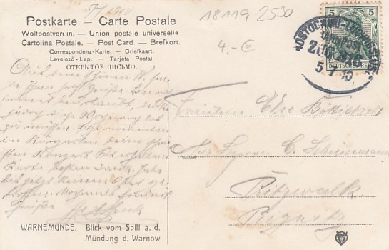 Warnemünde Bahnpoststempel Ludwigslust 1910