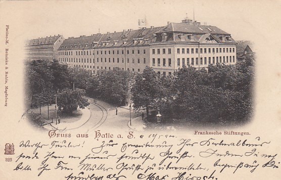 Halle an der Saale Frankesche Stiftung Bahnpoststempel Berlin-Eisenach 1900