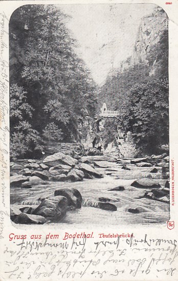 Thale im Harz Bodethal Teufelsbrücke Bahnpoststempel Halle-Hildesheim