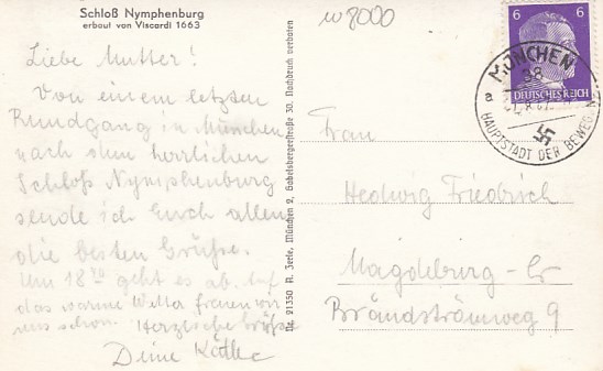 München Schloß Nymphenburg Kanal Propaganda Stempel 1937