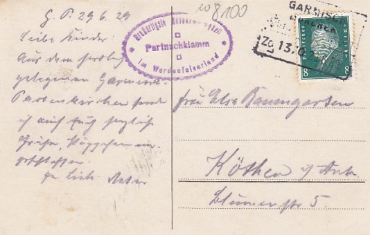 Garmisch-Partenkirchen Bahnpoststempel 1929