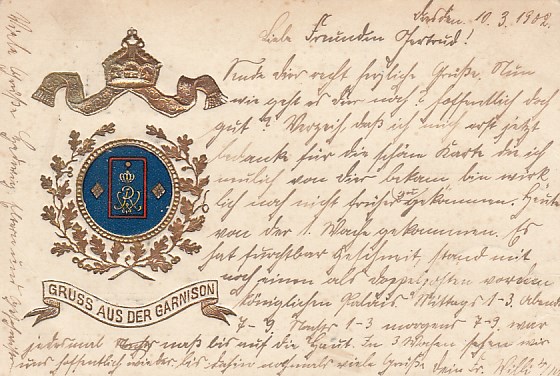 Militär vor 1914 Regiments AK Garnison Patriotische Prägekarte Stempel Dresden 1902