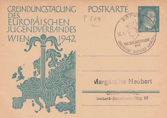 Privatganzsache P309 Jugendverband Wien 1942 Sonderstempel Erfurt