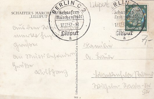 Berlin Mitte Charlottenburg Schaefers Märchenfest Lilliput Sonderstempel 1937