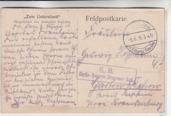 Berlin Charlottenburg Messegelände Zum Unterstand deutsche Soldaten 1916 Feldpoststempel