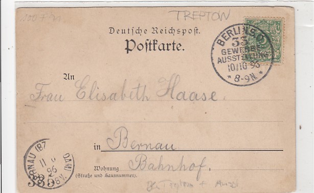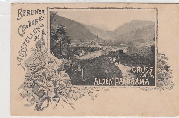 Berlin Treptow Gewerbe-Ausstellung 1896 Alpen Panorama Bayern Sonderstempel 1896