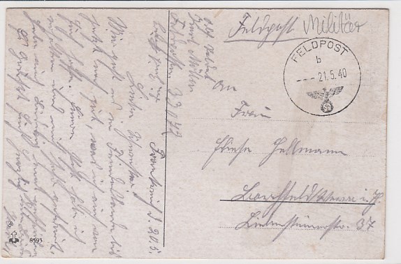 Militär 2.WK Liederkarte Wehrmacht Soldaten Sprüche Gedicht Feldpoststempel 1940
