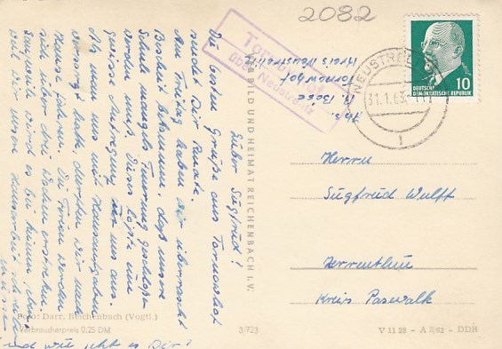 Altenberg im Erzgebirge OT Lauenstein Bahnpoststempel 1957