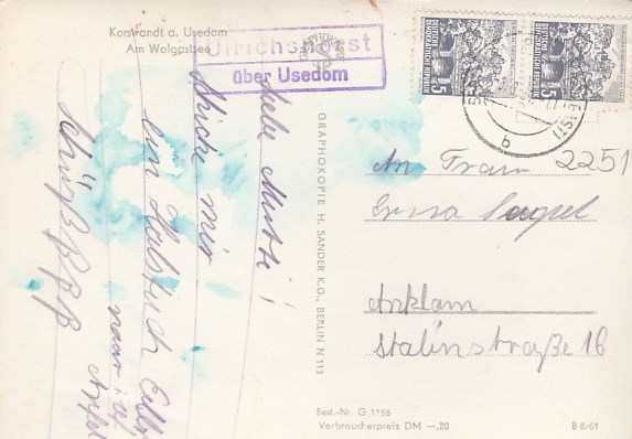 Korswandt auf Usedom Landpoststempel Ulrichshorst 1961
