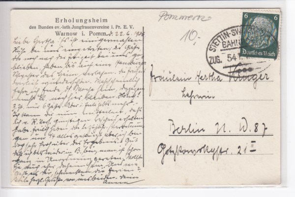 Glogau Bahnhof Bahnpoststempel Küstrin 1935 Schlesien