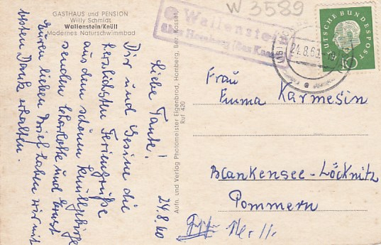 Wallenstein Knüll bei Homberg Landpoststempel 1960