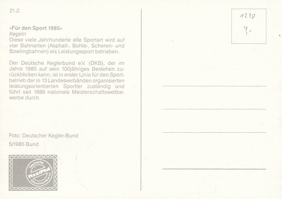 Sport Kegeln Erstausgabe Sonderstempel