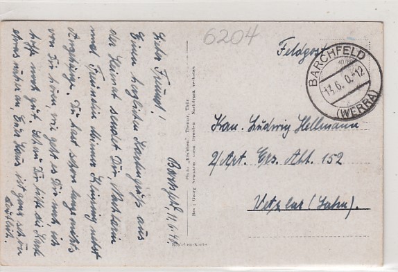 Barchfeld Werra Thüringen 1940 Feldpoststempel
