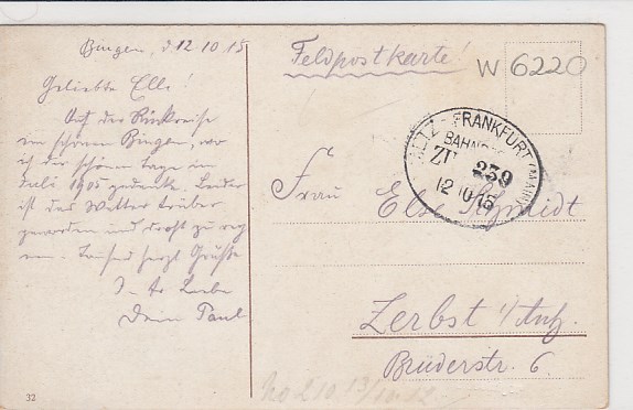 Rüdesheim im Rheingau Bahnpoststempel 1915