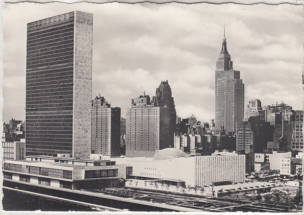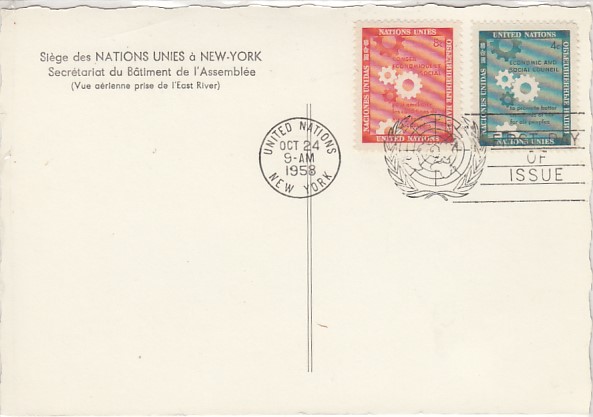 New York City USA old postcard UN Headquarters Sonderstempel 1958