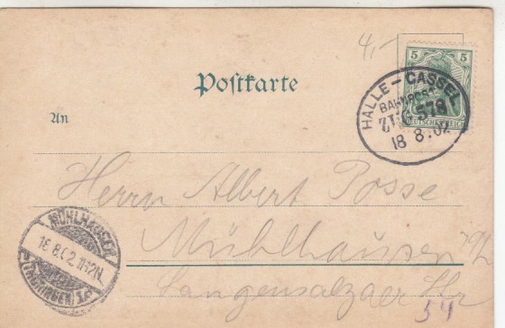 Leipzig Töpferplatz Bahnpoststempel Halle Saale - Kassel 1902