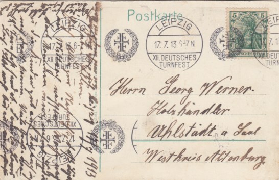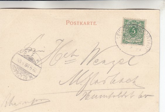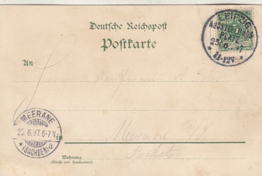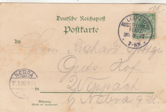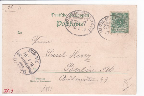 Leipzig Fleicherplatz Bahnpoststempel 1899