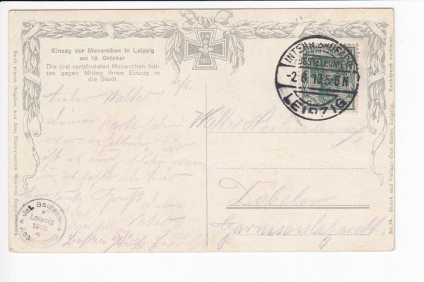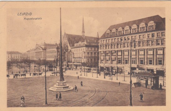 Leipzig Königsplatz Strassenbahn 1918 Feldpoststempel Connewitz
