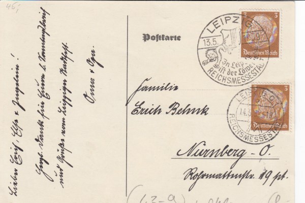 Leipzig Reichsgericht 1939 Sonderstempel Halle an der Saale