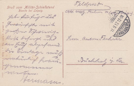 Leipzig Bienitz Militär Schießstand Schiessen Feldpoststempel 1.WK Soldaten