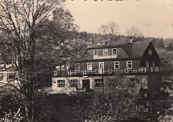 Wölfelsgrund Hotel Gute Laune mit Forellenteich Stempel Friedrichshagen 1899 in Schlesien