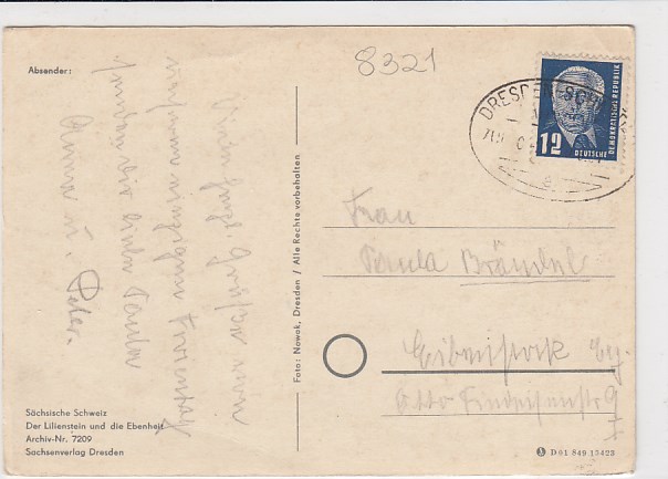 Lilienstein und Ebenheit bei Bad Schandau Bahnpoststempel ca 1950