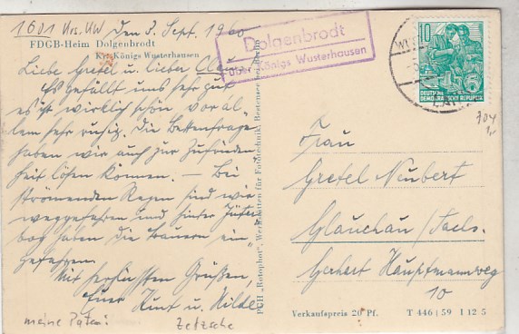 Dolgenbrodt FDGB Heim Landpoststempel 1959