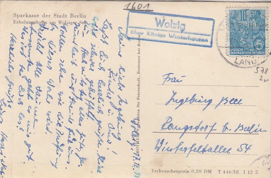 Wolzig Erholungsheim der Sparkasse Berlin Landpoststempel 1958