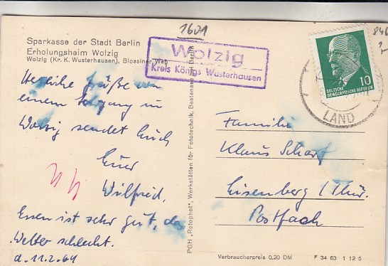 Wolzig Erholungsheim der Sparkasse Berlin Landpoststempel 1963