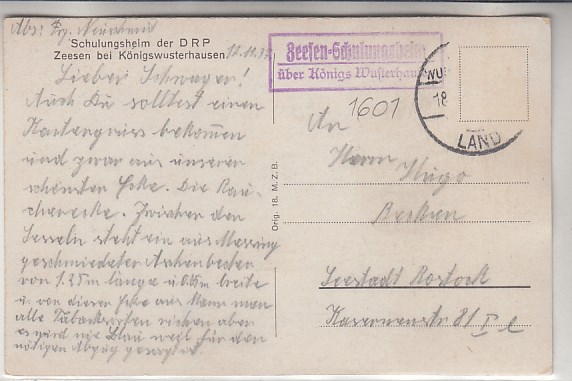 Zeesen bei Königs Wusterhausen,Schulungslager der DRP Landpoststempel
